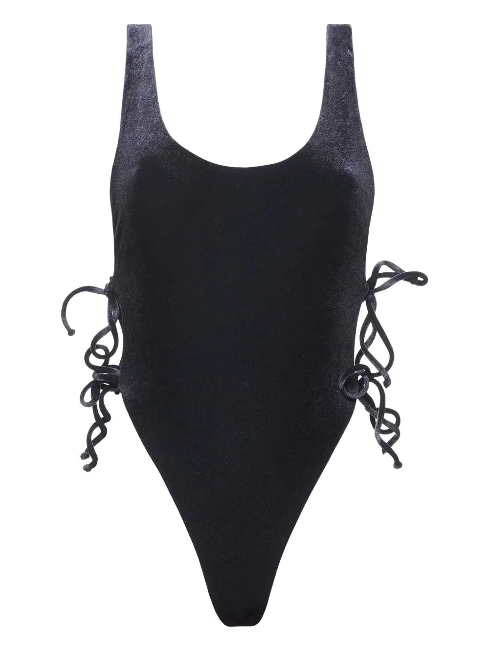 Bowie velvet lace-up swimsuit Highlights - Black - Velvet texture - Scoop neck - Lace-up sides - Low back - Be mindful to try on swimwear over your own garments. Imported Composition Velvet 100% Washing instructions Read Manufacturer Guidelines