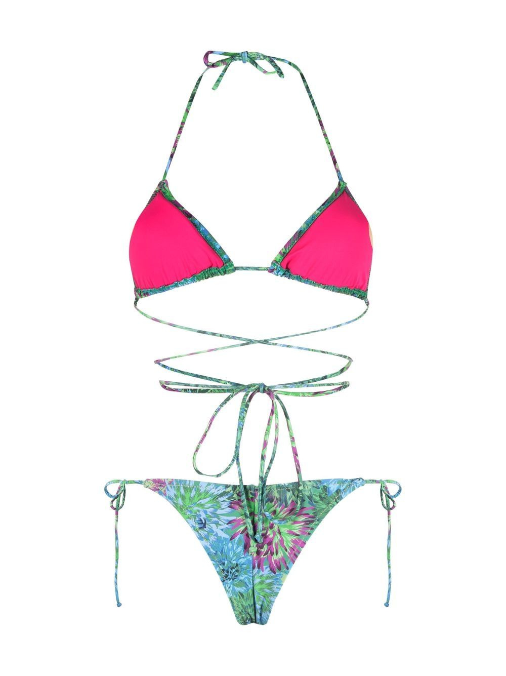 Miami floral-print bikini set green recycled nylon-blend Top: all-over floral print triangle cup rear tie fastening Bottoms: all-over floral print low-rise side tie fastening Be mindful to try on swimwear over your own garments. POSITIVELY CONSCIOUS: This Planet Conscious product is crafted from certified recycled or upcycled materials, which helps you make a better choice for the environment as they generate less energy, save water and reduce the need for new raw materials. For recycled synthetic clothing products we highly recommend using a microfibre-catching washing bag to ensure that no microplastics that can pollute water are released in the process. Made in Italy Composition Recycled Nylon 78%, Elastane 22%