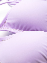 Miami lurex bikini set Highlights - Lilac purple - Stretch-design - Metallic threading - Lurex detailing - Triangle cup - Halterneck tie fastening - Rear tie fastening - Side-tie bottoms - Thong style - Be mindful to try on swimwear over your own garments. Made in Italy Composition Recycled Polyamide 78%, Spandex/Elastane 22%