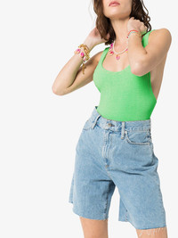 Ruby crinkle swimsuit No one has time to iron. In fact, this neon green Ruby crinkle swimsuit from REINA OLGA is meant to look like it has been packed in a suitcase for a while. You are on holiday, worry about things other than a few creases. Featuring a round neck, a crinkled design and a fitted silhouette. Swimwear must be tried on over your own garments. Made in Italy Composition Polyamide 95%, Spandex/Elastane 5% SIZE & FIT Model measurements Height 5 ft 9 in(1.74 m) Bust/Chest 32.28 in(82 cm) Hips 35.82 in(91 cm) Waist 24.01 in(61 cm) Measurement BUST 19.68 in(50 cm) HIPS 17.32 in(44 cm) WAIST 17.32 in(44 cm) LENGTH 12.99 in(33 cm)