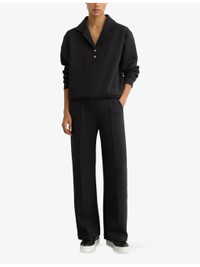 PRODUCT DETAILS - Reiss stretch-jersey jogging bottoms - 60% polyester, 35% viscose, 5% elastane - Relaxed fit, elasticated waist, side-stripe detail, wide leg - Machine wash at 30°C - True to size - Model is 5ft 9in/1.75m and wears a size UK 8 - Midweight, slight-stretch Ref: R04549599