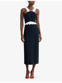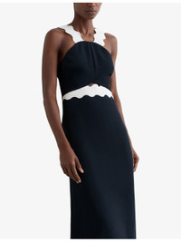 PRODUCT DETAILS - Reiss woven midi dress - 100% viscose - Zip fastening - Slim fit, wide wavy shoulder straps, contrast waistband - Dry clean - True to size - Model is 5ft 9in/1.75m and wears a size UK 8 - Lightweight, slight stretch Ref: R04532080