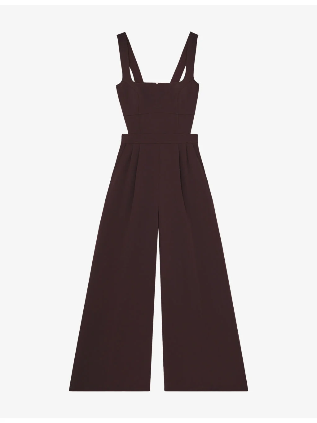 PRODUCT DETAILS - Reiss woven jumpsuit - 100% polyester - Zip fastening - Slim fit, square neck, sleeveless, cut-out panel, side pockets, wide leg - Machine wash mild - True to size - Model is 5ft 10in/1.78m and wears a size UK 8 - Lightweight, non-stretch Ref: R04493791