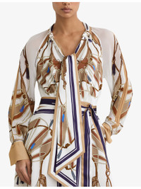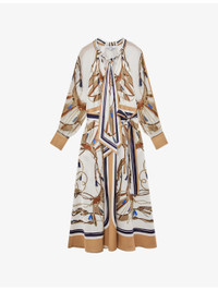 Ellie Foulard-Print Tie-Neck Woven Midi Dress