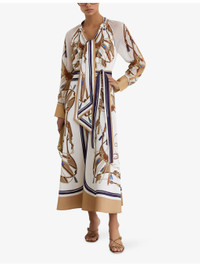 PRODUCT DETAILS - Reiss woven midi dress - 63% viscose, 37% cotton - Regular fit, tie-neck, long sleeves, pockets at front, placement print - Dry clean only - True to size - Model is 5ft 10in/1.78m and wears a size UK 8 - Lightweight, non-stretch Ref: R04539015