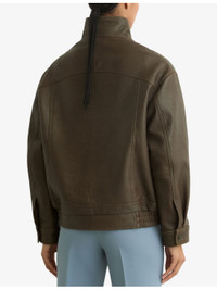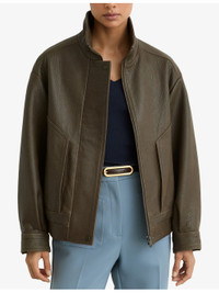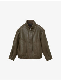 PRODUCT DETAILS - Reiss leather bomber jacket - 100% leather - Zip fastening - Oversized fit, funnel neck, long sleeves, buttoned cuffs, side pockets, grained texture - Specialist leather clean - True to size - Model is 5ft 10in/1.78m and wears a size UK 8 - Heavyweight, non-stretch Ref: R04484611