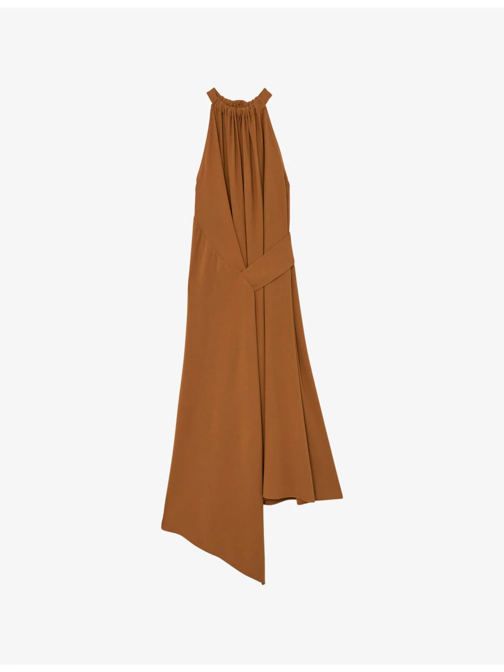 PRODUCT DETAILS - Reiss woven midi dress - 80% acetate, 20% polyester - Concealed zip fastening - Gathered neckline, sleeveless, flared asymmetric hem - Hand wash cold - True to size - Model is 5ft 10in/1.78m and wears a size UK 8 - Lightweight, non-stretch Ref: R04533855
