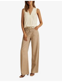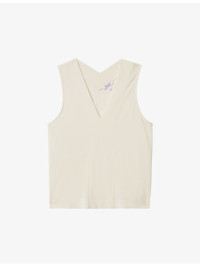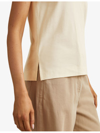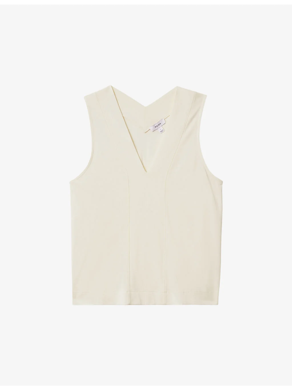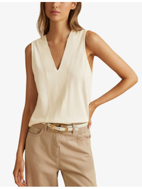 PRODUCT DETAILS - Reiss woven top - 55% viscose, 45% cotton - Slips on - Relaxed fit, V-neckline, sleeveless, panel detail at the front - Machine wash cold - True to size - Model is 5ft 9in/1.75m and wears a size UK 8 - Lightweight, non-stretch