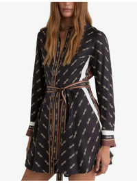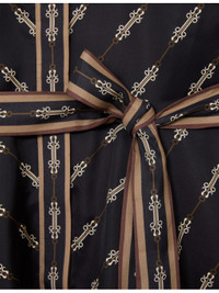 PRODUCT DETAILS - Reiss woven dress - 100% viscose - Concealed button fastenings at front - Regular fit, round neck, long sleeves, all-over chain print, belted at the waist - Machine wash at 30°C - True to size - Model is 5ft 9in/1.75m and wears a size UK 8 - Lightweight, non-stretch Ref: R04544837