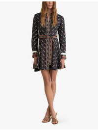 Nina Chain-Print Belted-Waist Woven Mini Dress