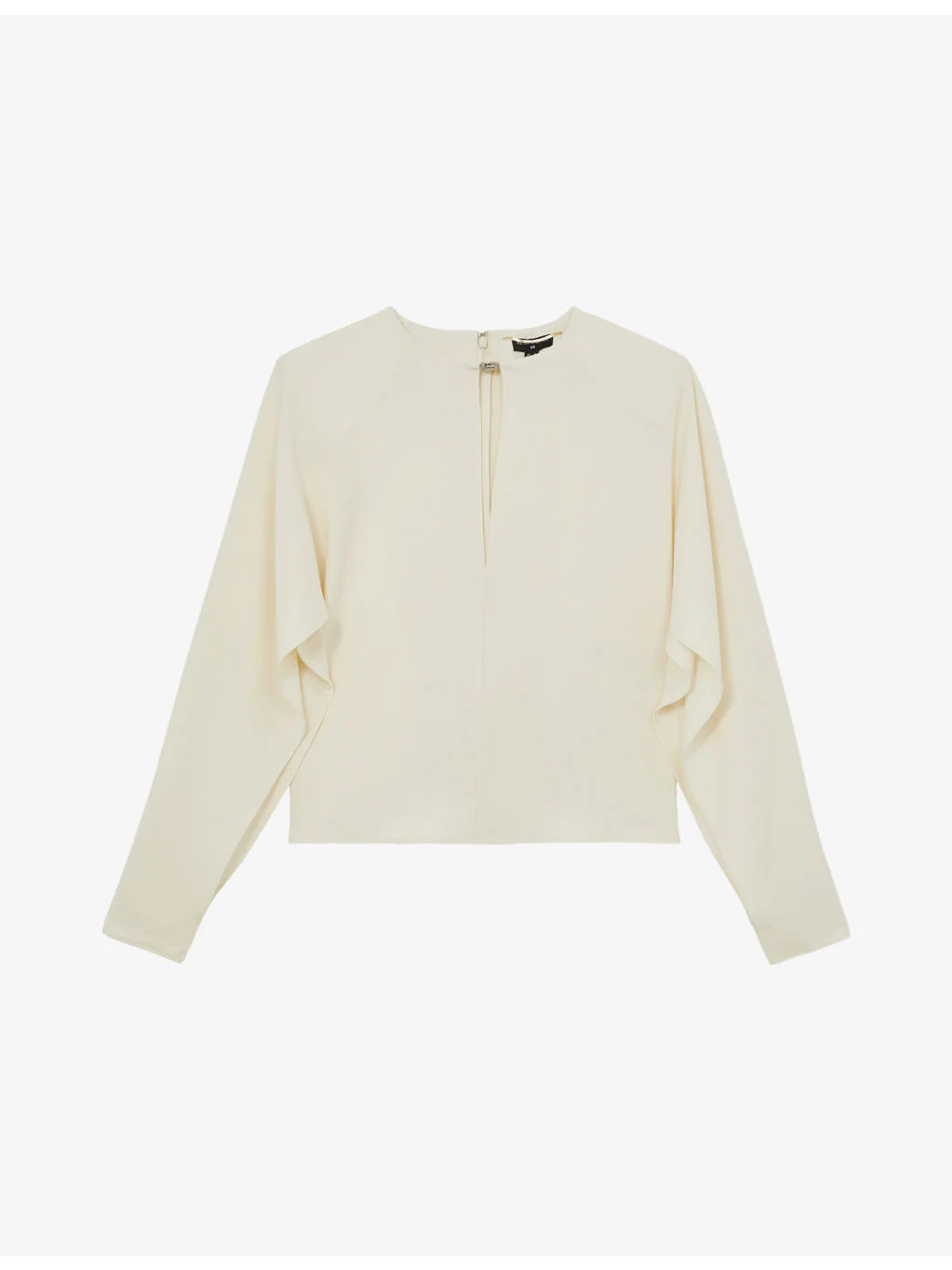 PRODUCT DETAILS - Reiss x Atelier woven blouse - 69% acetate, 31% polyester - Concealed zip fastening at back - Relaxed fit, round neck with turn-lock embellishment, cut-out detail, long split sleeves - Dry clean - True to size - Lightweight, non-stretch Ref: R04493800