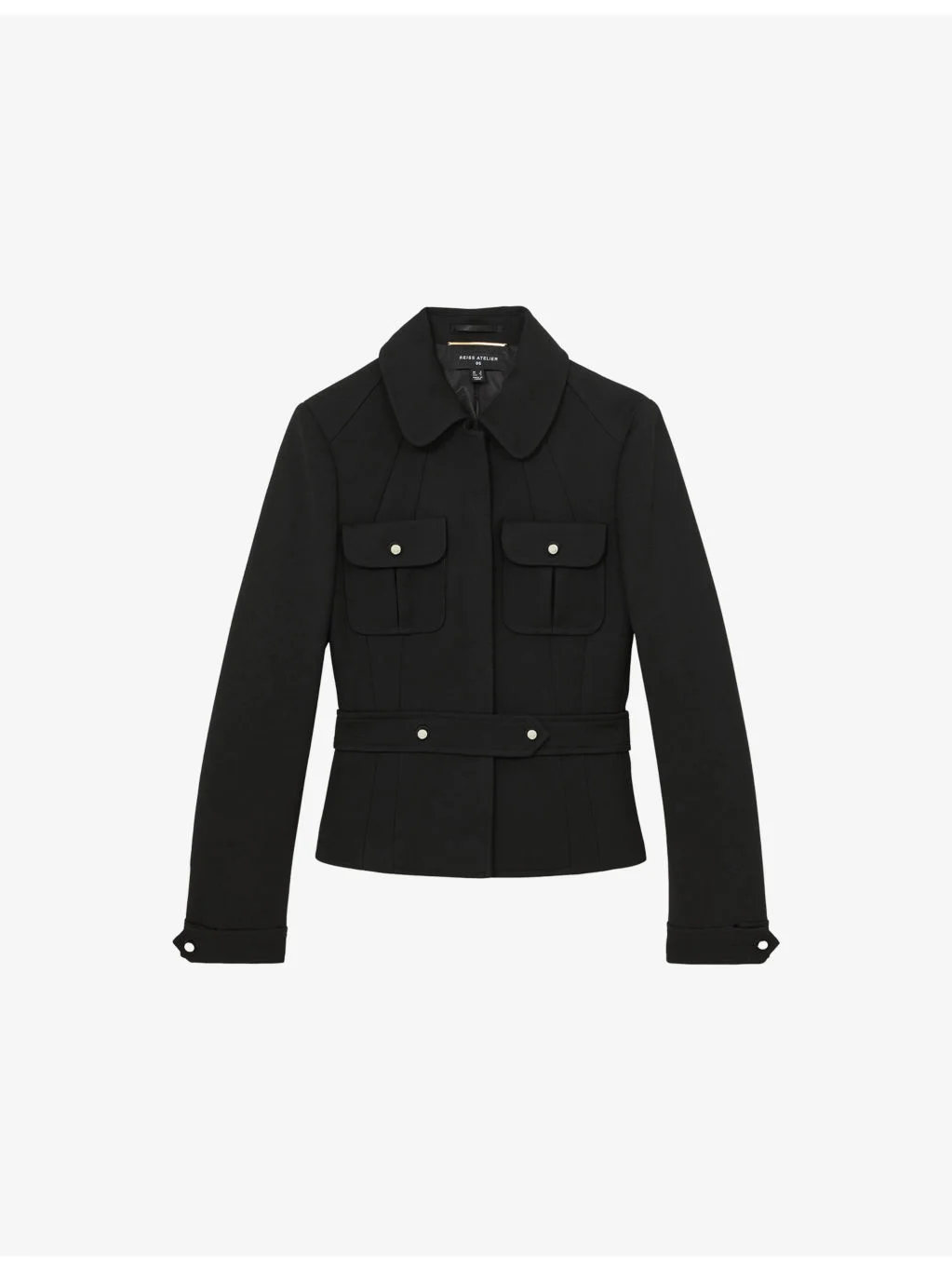 PRODUCT DETAILS - Reiss x Atelier wool jacket - 100% wool - Button fastening - Regular fit, collar, long sleeves, buttoned cuffs, buttoned chest pockets, belted waist - Dry clean - True to size - Model is 5ft 9in/1.75m and wears a size UK 8 - Midweight, non-stretch Ref: R04480971