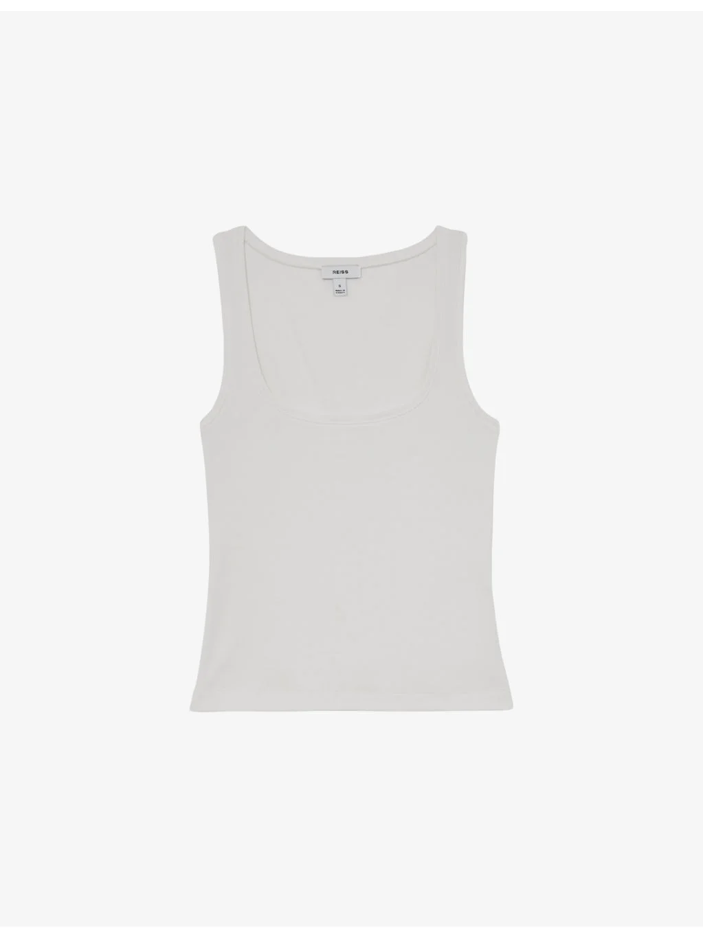 PRODUCT DETAILS - Reiss stretch-cotton vest - 95% cotton, 5% elastane - Slim fit, square neck, sleeveless, all-over ribbed finish - Machine wash at 30°C - True to size - Model is 5ft 9in/1.75m and wears a size UK 8 - Midweight, slight stretch Ref: R04566818