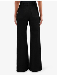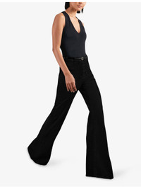 PRODUCT DETAILS - Reiss denim-blend jeans - 69% cotton, 18% polyester, 12% lyocell, 1% elastane - Exposed button and concealed zip-fly fastening at front - Slim fit, high rise, belt loops, two patch pockets to front, flared leg, pintuck detail to leg, two patch pockets at back - Machine wash cold - True to size - Model is 5ft 9in/1.75m and wears a size 26 - Midweight, slight stretch Ref: R04484617