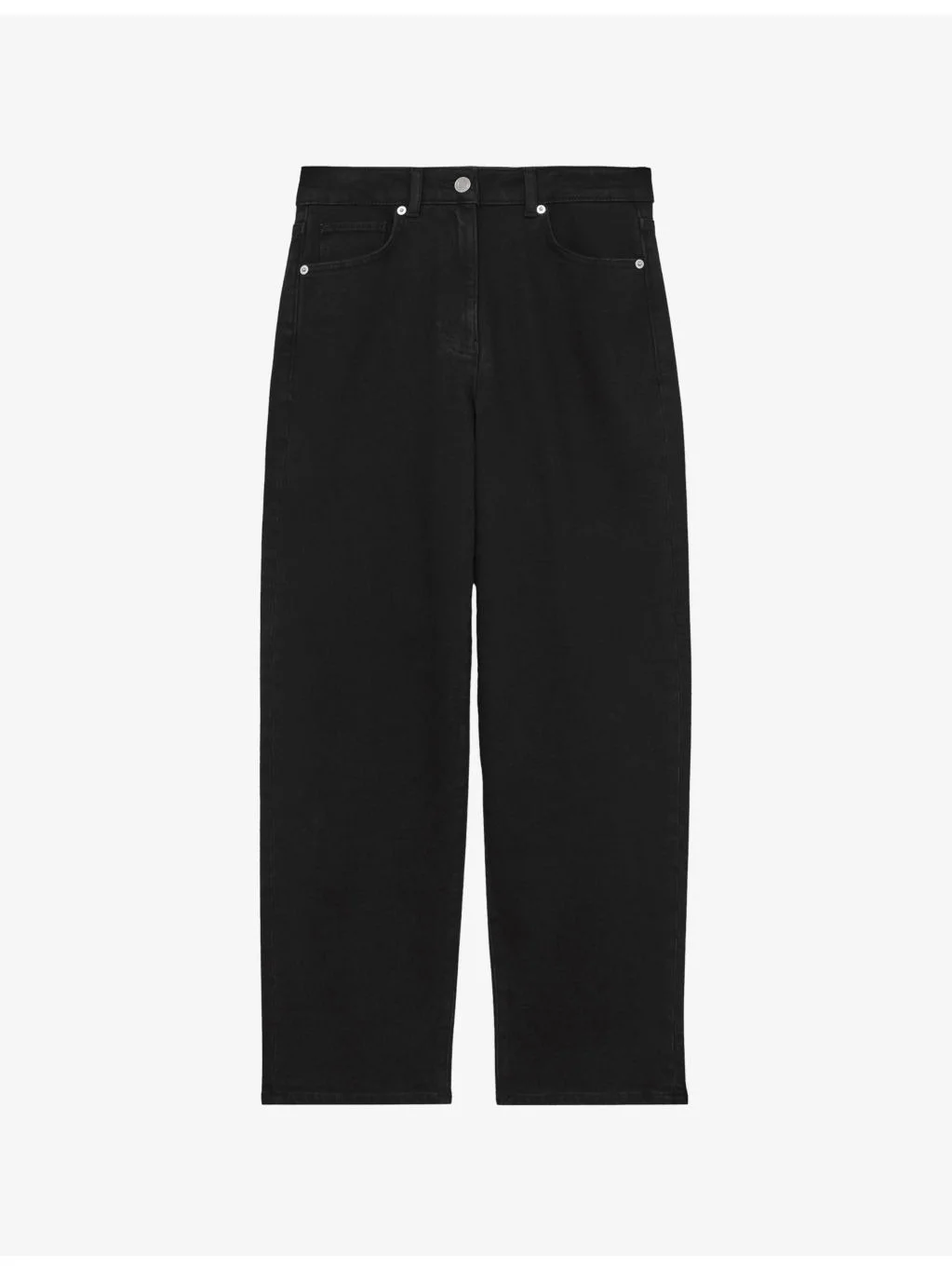 PRODUCT DETAILS - Reiss denim jeans - 94% cotton, 5% polyester, 1% elastane - Exposed button and concealed zip-fly fastening at front - Regular fit, mid-rise, straight leg, structured waistband with belt loops, five pockets, silver-toned branded hardware, cropped - Dry clean only - True to size - Midweight, non-stretch Ref: R04525027