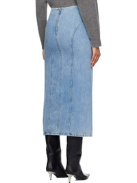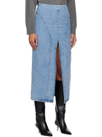 Non-stretch organic cotton-blend denim midi skirt. · Slim-fit · Paneled construction · Slit at front hem · Concealed zip closure at back waistband · Contrast stitching in tan Supplier color: Faded denim 60% organic cotton, 40% lyocell. Made in Turkey 242985F092006