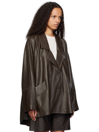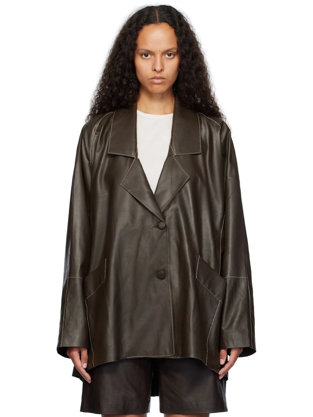 Buffed lambskin leather jacket. · Wide-fit · Notched lapel · Button closure · Welt pockets · Raw edge at droptail hem · Dropped shoulders · Partial satin lining · Contrast stitching in off-white Supplier color: Delicioso Body: 100% lambskin. Lining: 100% viscose. Made in Turkey 242985F064011