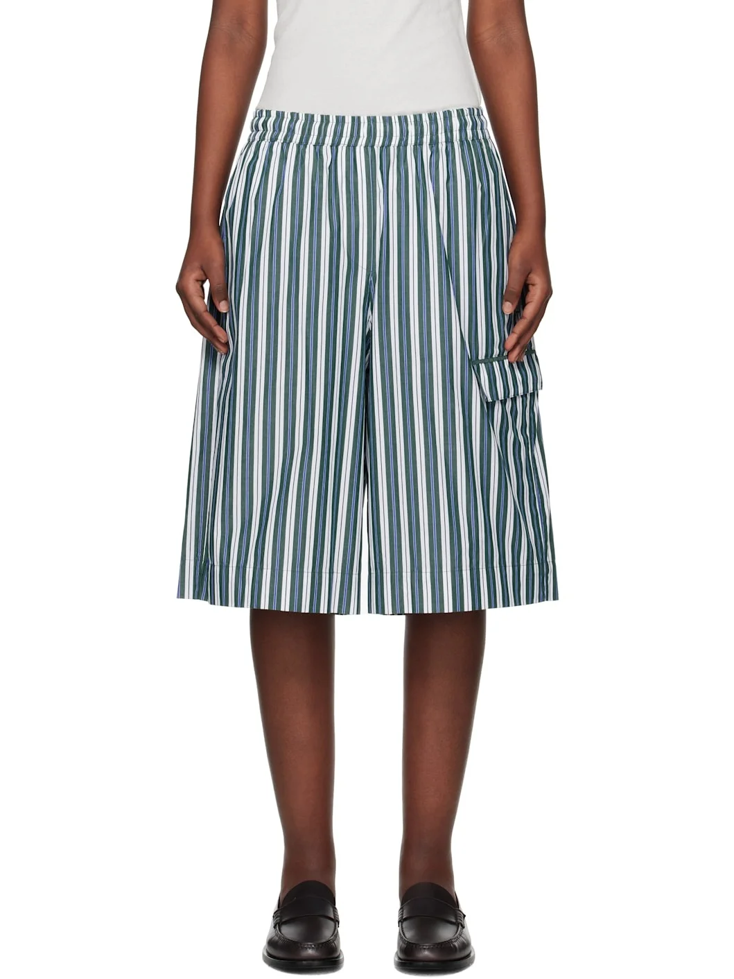 Wide-leg cotton poplin shorts. Striped pattern throughout. · Concealed drawstring at elasticized waistband · Three-pocket styling · Mock fly · Flap pocket at outseam Supplier color: Striped green 100% cotton. Made in Turkey 251985F088000