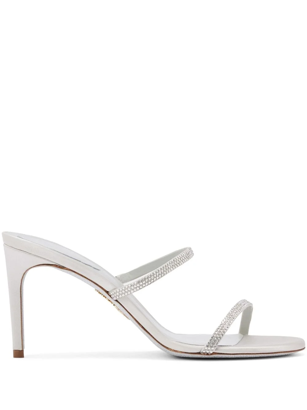 100mm satin strass sandals Highlights - Grey - Satin/calf leather - Double-strap design - Crystal embellishment - Round open toe - Branded leather insole - High stiletto heel - Slip-on style Made in Italy Composition Outer: Satin 100% Sole: Calf Leather 100% Lining: Calf Leather 100%