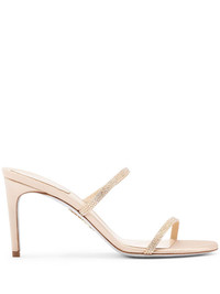 100mm satin strass sandals Highlights - Beige - Satin/calf leather - Double-strap design - Crystal embellishment - Round open toe - Branded leather insole - High stiletto heel - Slip-on style Made in Italy Composition Sole: Calf Leather 100% Outer: Satin 100% Lining: Calf Leather 100%