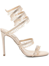 105mm Chandelier sandals Highlights - Beige - Crystal embellishment - Round open toe - Branded footbed Made in Italy Composition Lining: Leather 100% Outer: Satin 100% Sole: glitter 100%