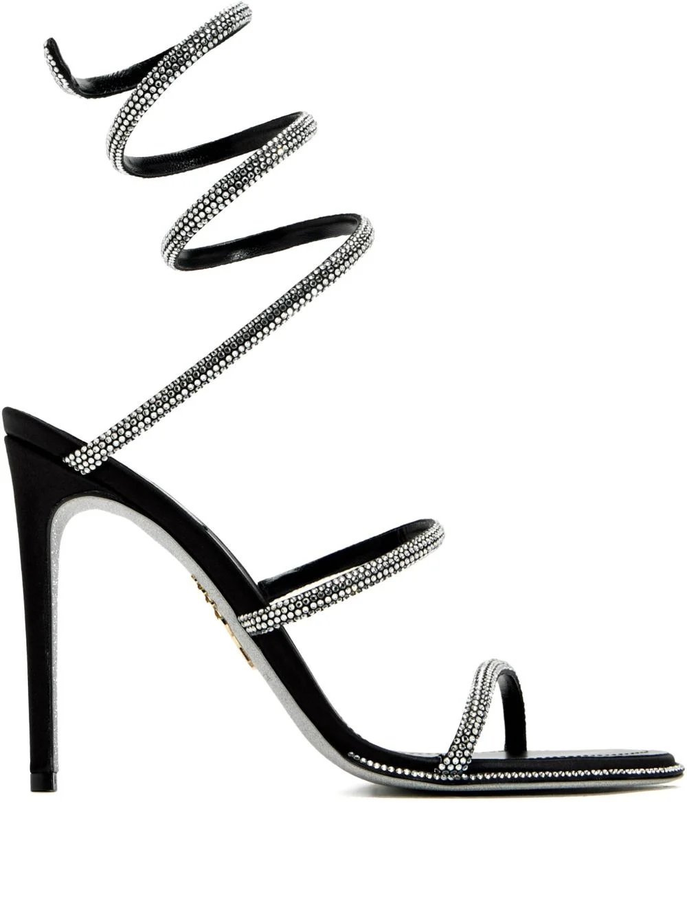 105mm Cleo Anthracite crystal-embellished spiral-strap sandals