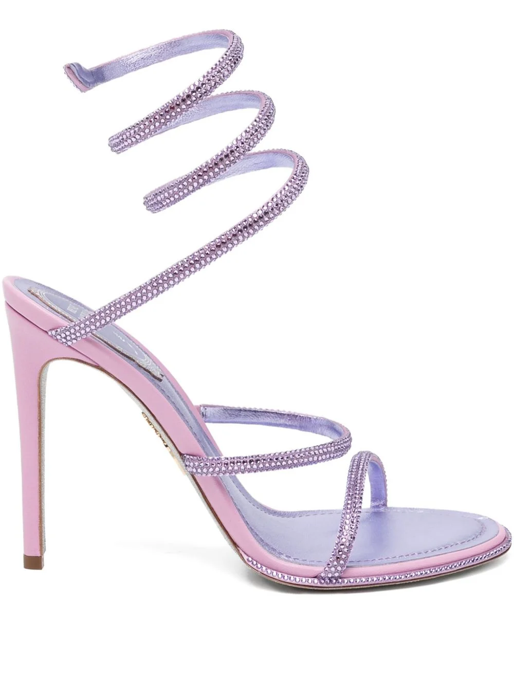 105mm Cleo heeled sandals Highlights - Lilac - Crystal embellishment - Open toe - Ankle strap Made in Italy Composition Outer: Viscose 68%, Silk 32% Lining: Calf Leather 100% Sole: Calf Leather 100% SIZE & FIT Measurement HEEL 4.13 in(10.5 cm)