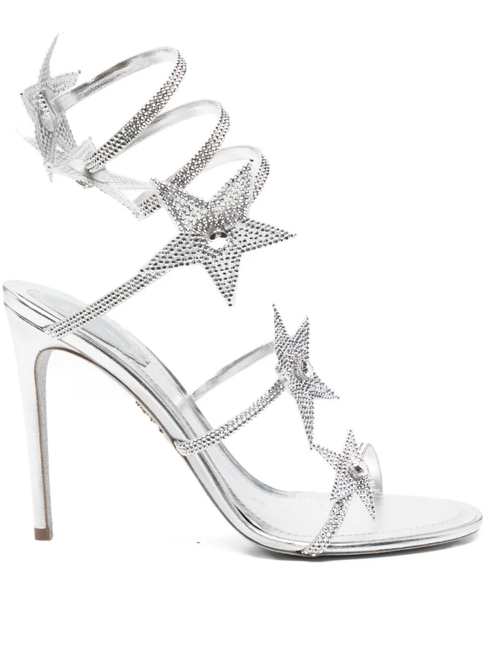105mm Cleo sandals Highlights - Silver-tone - Spiral-bound design - High stiletto heel - Round open toe - Crystal embellishment Imported Composition Sole: Glitter 100%, Calf Leather 100% Lining: Calf Leather 100% Outer: Fabric 100% SIZE & FIT Measurement HEEL 4.33 in(11 cm)