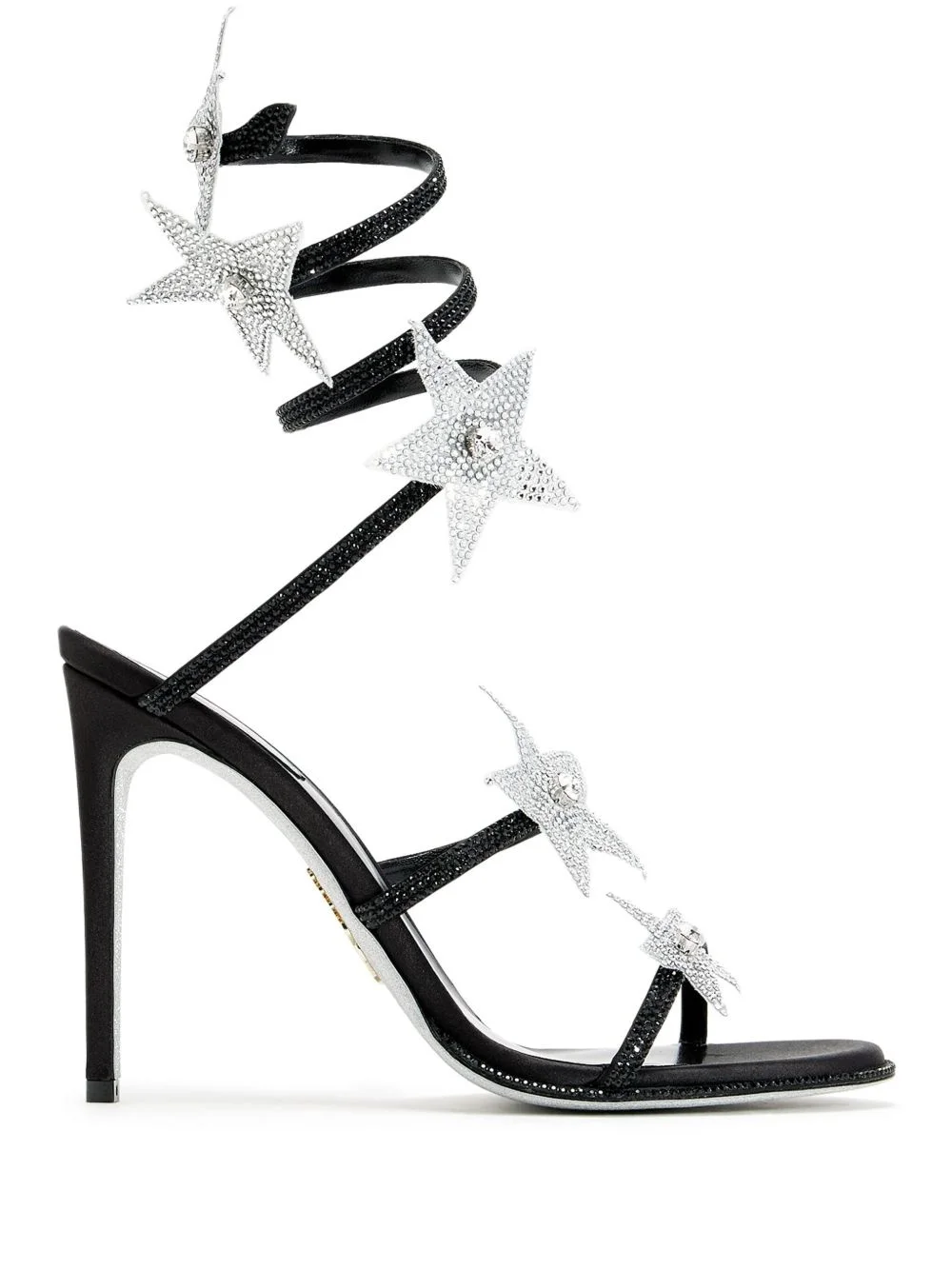 105mm Cleo sandals Highlights - Black - Crystal-embellished ankle strap - 105mm stiletto heel - Almond open toe - Star patch detail Made in Italy Composition Sole: Glitter 100% Outer: Satin 100%, Crystal 100% Lining: Calf Leather 100% SIZE & FIT Measurement HEEL 4.13 in(10.5 cm)