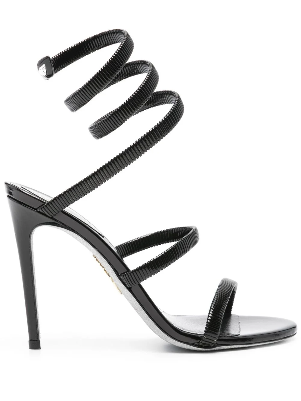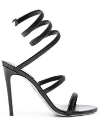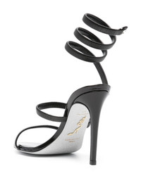 105mm Cleo sandals Highlights - Black - Metal - Fine ribbed - Double-strap design - Crystal-embellished ankle strap - Round open toe - Branded leather insole - 105mm stiletto heel - Glitter detailed leather sole Made in Italy Composition Lining: Metal 100%, Calf Leather 100% Sole: Calf Leather 100%, Glitter 100%, Rubber 100% Outer: Metal 100% SIZE & FIT Measurement HEEL 4.33 in(11 cm) HEIGHT 4.72 in(12 cm) Sole height 0.39 in(1 cm)