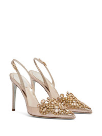 105mm crystal pumps Highlights - Beige - Buckle-fastening slingback strap - Crystal embellishment - Lace detailing - Stiletto heel Made in Italy Composition Outer: Calf Leather 100%, Silk 100% Lining: Calf Leather 100% Sole: Calf Leather 100%, Glitter 100% SIZE & FIT Measurement HEEL 4.13 in(10.5 cm)