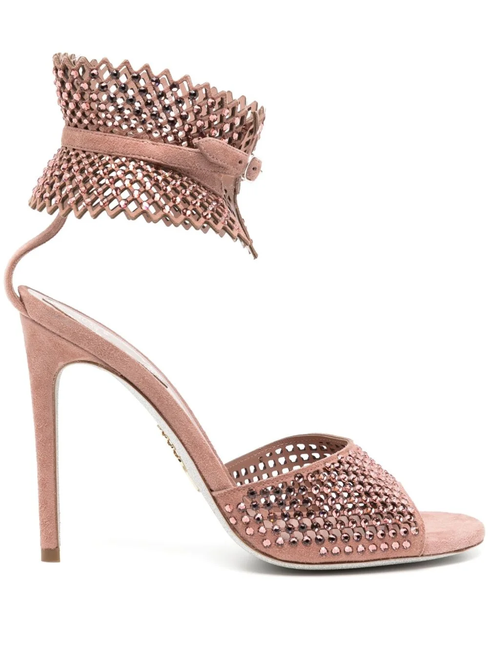 110mm crystal-embellished sandals Highlights - Blush pink - Leather - Crystal embellishment - Mesh design - Round open toe - Buckle-fastening ankle strap - Branded leather insole - 110mm high stiletto heel Made in Italy Composition Lining: Leather 100% Sole: Leather 100% Outer: Fabric 100% SIZE & FIT Measurement HEEL 4.33 in(11 cm)