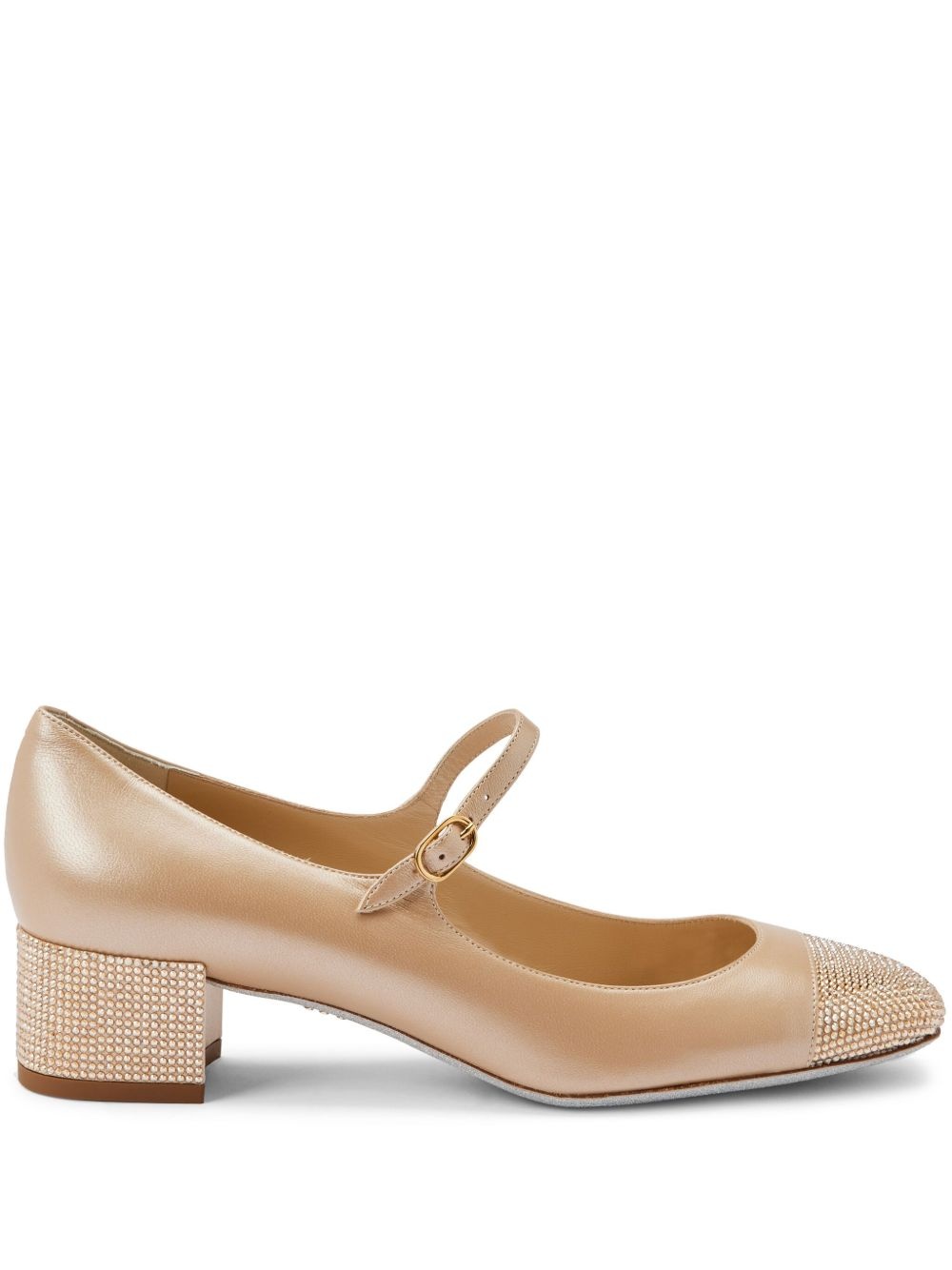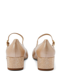 40mm Kristen pumps Highlights - Beige - Calf leather - Crystal embellishment - Round toe - Buckle fastening - Branded leather insole - Low block heel Made in Italy Composition Lining: Calf Leather 100% Sole: Calf Leather 100% Outer: Rhinestone 100%, Lamb Skin 100%, Viscose 68%, Silk 32% SIZE & FIT Measurement HEEL 1.5 in(3.8 cm)