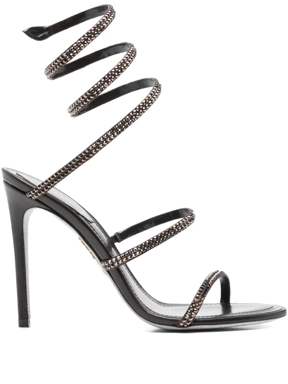 80mm Cleo sandals Highlights - Brown - Spiral ankle strap - Stiletto heel - Crystal embellishment - Open toe Made in Italy Composition Sole: Calf Leather 100%, Rubber 100% Outer: Satin 100% Lining: Calf Leather 100% SIZE & FIT Measurement HEEL 3.14 in(8 cm)