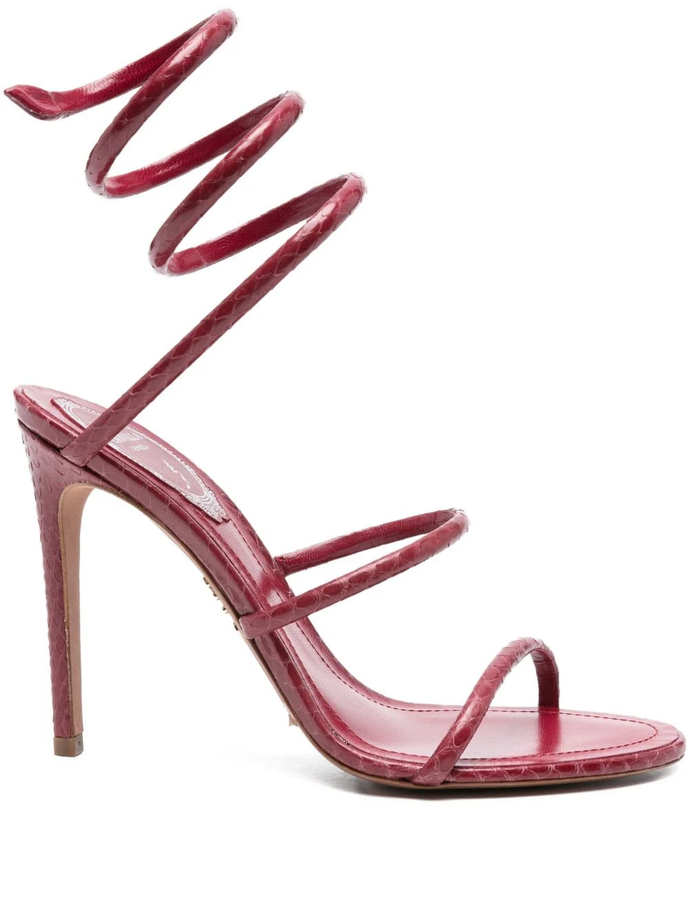 80mm Cleo spiral-wrap leather sandals Highlights - Burgundy - Calf leather - Spiral ankle wrap - Two straps - Stiletto heel - Open toe Made in Italy Composition Lining: Calf Leather 100% Outer: Calf Leather 100% Sole: Calf Suede 100% SIZE & FIT Measurement HEEL 4.13 in(10.5 cm)