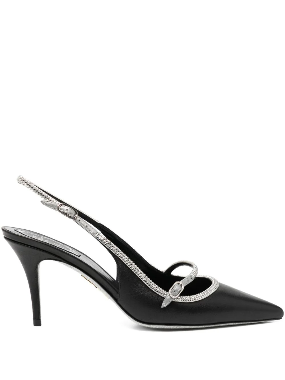 80mm crystal-embellished pumps Highlights - Black - Crystal embellishment - Pointed toe - Slingback strap - Stiletto heel - Buckle fastening Made in Italy Composition Sole: Leather 100% Lining: Leather 100% Outer: Satin 59%, Leather 50% SIZE & FIT Measurement HEEL 3.14 in(8 cm)