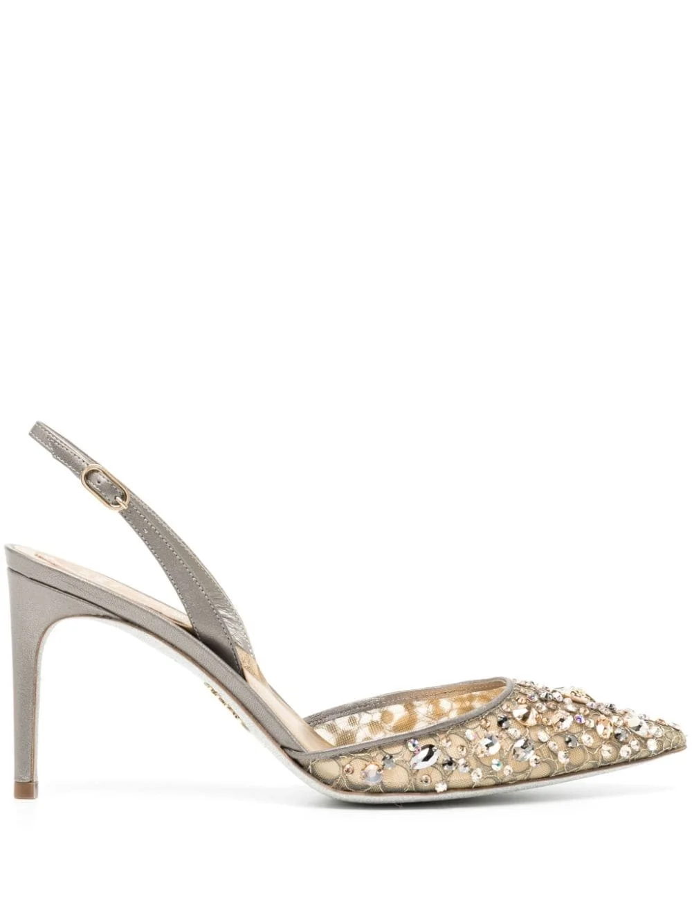 80mm crystal-embellished pumps Highlights - Gold-tone - Leather - Crystal embellishment - Pointed toe - Buckle-fastening slingback strap - Branded leather insole - High heel Made in Italy Composition Sole: Leather 100% Outer: Polyester 100% Lining: Polyester 100% SIZE & FIT Measurement HEEL 3.14 in(8 cm)