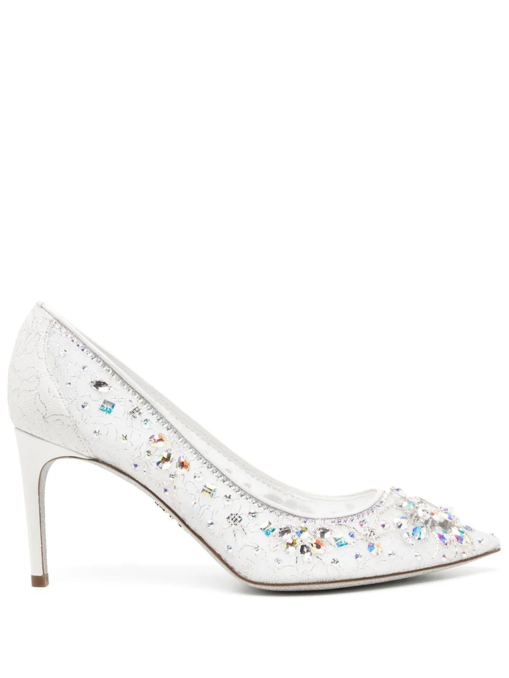 80mm crystal-embellished pumps Highlights - White - Calf leather - Glass crystal embellishment - Pointed toe - High stiletto heel - Slip-on style - Branded leather insole - Glitter detailed leather sole Made in Italy Composition Sole: Calf Leather 100% Outer: Other fibres 100% Lining: Calf Leather 100% SIZE & FIT Measurement HEEL 3.14 in(8 cm)