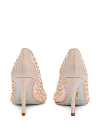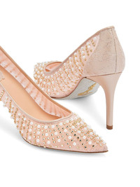 80mm lace pumps Highlights - Beige - Crystal embellishment - Pearl detailing - Pointed toe - Stiletto heel Made in Italy Composition Outer: Nylon 100%, Lamb Skin 100%, Rhinestone 100%, Pearl 100% Lining: Calf Leather 100% Sole: Calf Leather 100%, Glitter 100% SIZE & FIT Measurement HEEL 3.14 in(8 cm)