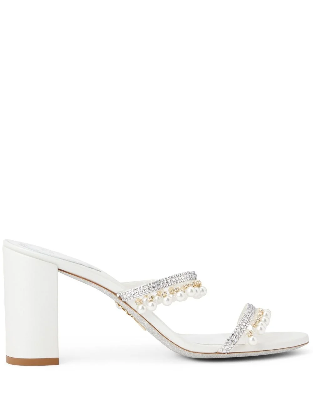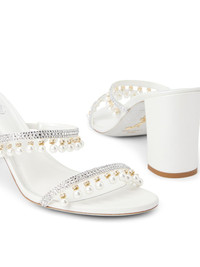 90mm Chandelier mules Highlights - White - Slip-on style - Faux-pearl detailing - Rhinestone embellishment - Open toe Made in Italy Composition Outer: Satin 100%, Faux Pearl 100%, Rhinestone 100% Lining: Calf Leather 100% Sole: Calf Leather 100%