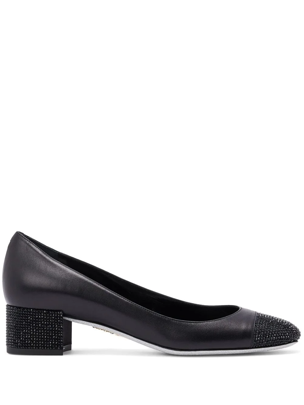 Kristen pumps Highlights - Black - Calf leather - Crystal embellishment - Square toe - Slip-on style - Block heel Made in Italy Composition Outer: Lambskin 80%, Satin 20% Sole: Calf Leather 100% Lining: Calf Leather 100%