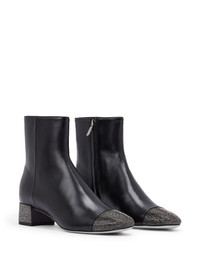 40mm Bonien crystal-embellished ankle boots Highlights - Black - Calf leather - Polished finish - Crystal embellishment - Square toe - Side zip fastening - Ankle-length - Low block heel - Leather sole Made in Italy Composition Outer: Calf Leather 100% Sole: Calf Leather 100% Lining: Calf Leather 100% SIZE & FIT Measurement HEEL 1.57 in(4 cm)