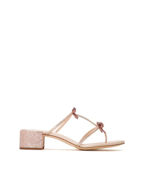 Caterina 40mm leather sandals Highlights - Black - Silk satin - Bow detailing - Crystal embellishment - Round open toe - Branded leather insole - Low block heel - Slip-on style Made in Italy Composition Silk 100% SIZE & FIT Measurement HEEL 1.57 in(4 cm)