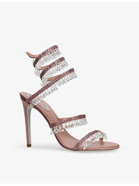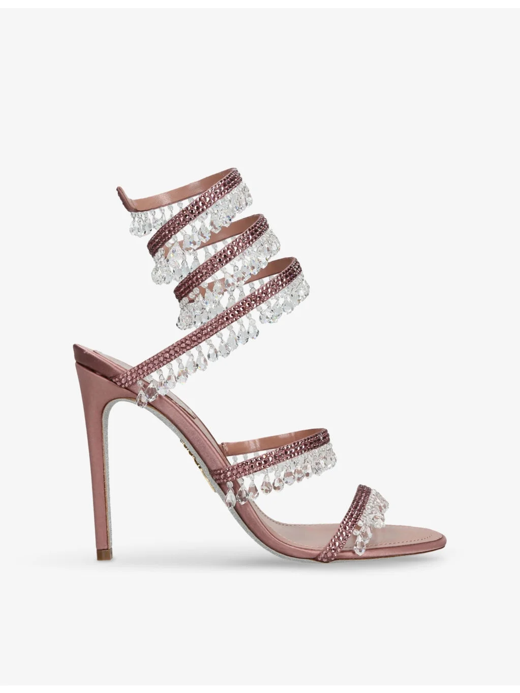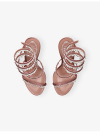 PRODUCT DETAILS - Rene Caovilla satin heeled sandals - 100% satin - Open round toe, rhinestone-embellished front straps and wraparound ankle strap, crystal-embellished trim to straps, stiletto heel - Heel height 4.1” - Wipe with a clean, dry cloth - Made in Italy - Upper: 100% fabric - Lining: 100% leather - Sole: 100% leather Ref: R04468780