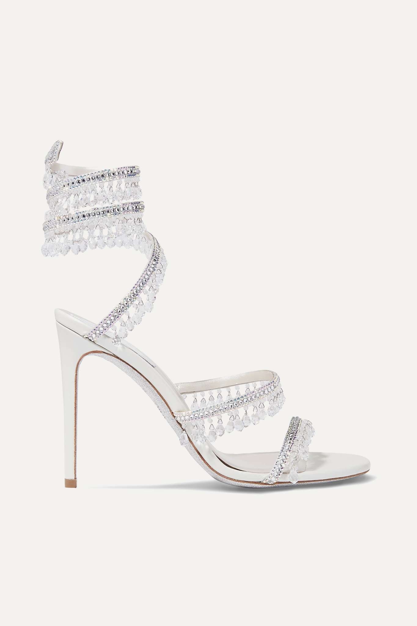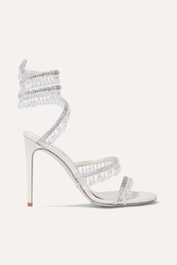 EDITORS'NOTES Edoardo Caovilla says he wants to craft 'dream-like' shoes, and these 'Cleo' sandals definitely capture his vision. They've been handcrafted at the brand's Venetian atelier from silver satin and leather with a matching glittered sole. The twirling ankle strap is hand-embellished with rows of crystals and beads, inspired by the sparkling chandeliers you'd see at the city's balls.<br><br>Shown here with: [Haney Dress id1148975], [Bienen-Davis Tote id1157114], [Anita Berisha Earrings id1156969], [Balenciaga Earrings id1119204]. SIZE & FIT - Fits small to size, take a half size larger than normal - Italian sizing DETAILS & CARE - Heel measures approximately 110mm/ 4.5 inches - Silver satin and leather (Calf) - Slip on - Made in Italy Small to size. See Size & Fit notes.