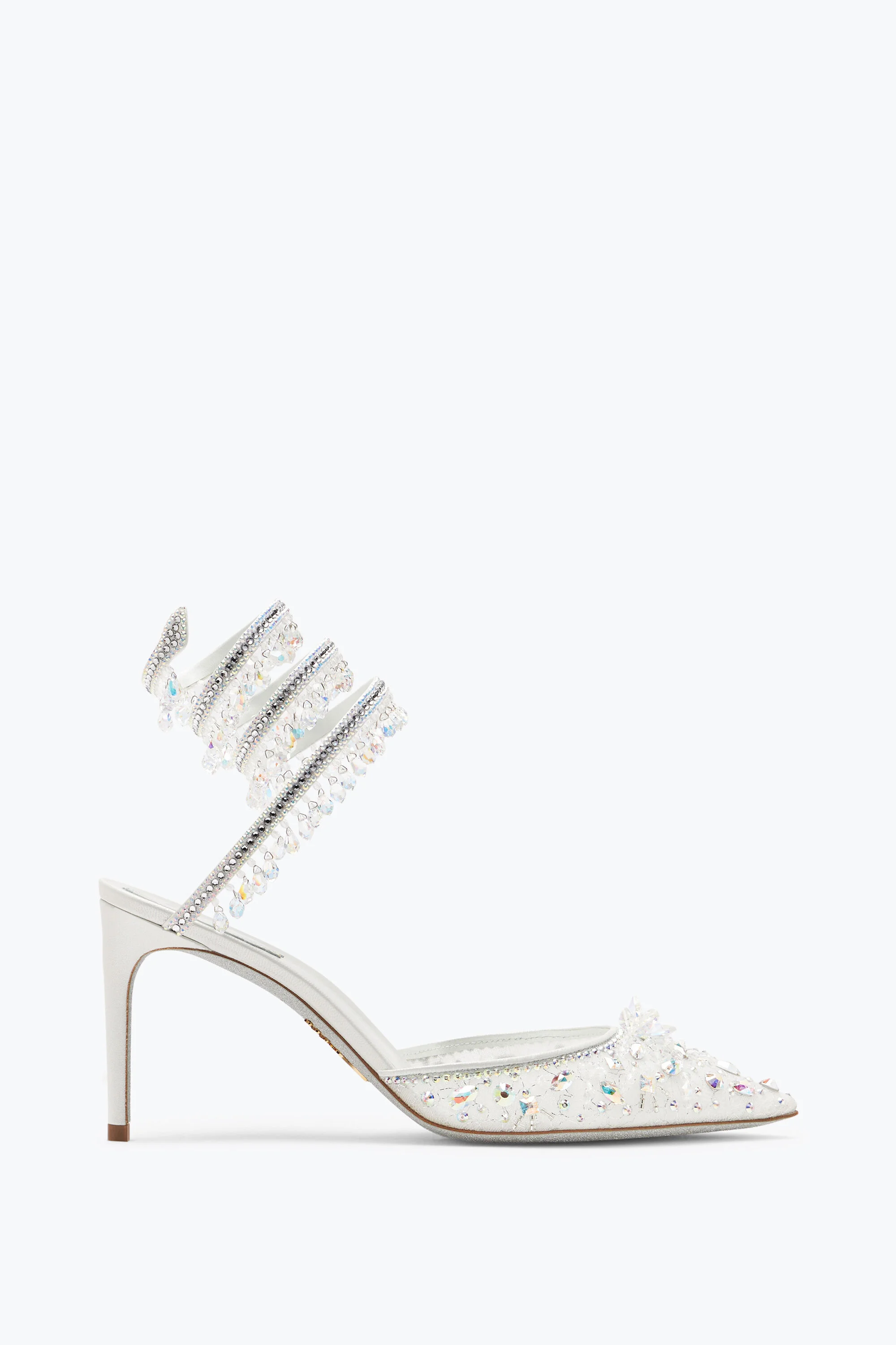 The Chandelier pump encapsulates the enchanting and magical universe that the Rene Caovilla maison has consistently embodied. The hand-applied iridescent crystals jingle along the serpent spiral giving movement and grace, the lace toe is finely decorated, the midi heel makes the fit comfortable. A fascinating and iconic style that can easily turn every dream into reality. - Lace, leather, nylon - Hand-applied rhinestones - Serpent hardware - Stiletto heel height 3.1’’ - Pointed toe - Stardust sole - Made in Italy Ref. C11783-080-RP01CATR