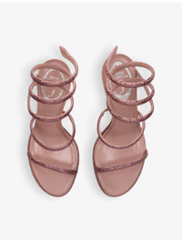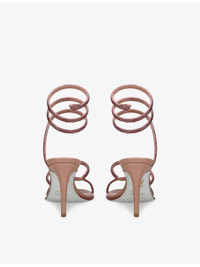 PRODUCT DETAILS - Rene Caovilla leather heeled sandals - 100% leather - Slips on - Round toe, spiral strap at ankle, rhinestone embellishment, mid-heel - Heel height 3.2in - Specialist leather clean - Made in Italy - Upper: 100% leather - Lining: 100% leather - Sole: 100% leather Ref: R04391796