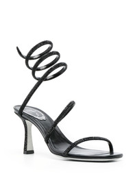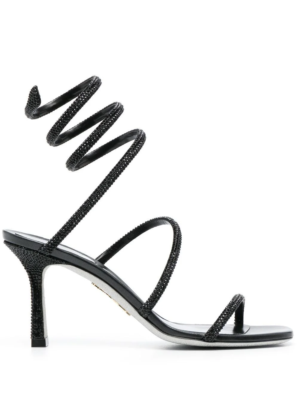 Cleo crystal 85mm sandals black calf leather crystal embellishment square toe branded insole crystal-embellished ankle strap 85mm heel Made in Italy Composition Sole: Calf Leather 100% Outer: Fabric 100% Lining: Calf Leather 100% SIZE & FIT Measurement HEEL 3.34 in(8.5 cm) HEIGHT 5.11 in(13 cm)