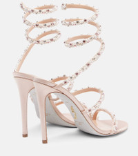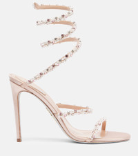 One of the brand’s most iconic styles, the Cleo sandals from Rene Caovilla were exhibited at the MOMA in New York City. This satin pair features 105mm stiletto heels and is finished with a stunning pearl embellishment and snake ankle straps. Product Details - Upper: fabric - Lining: leather - Sole: leather insole, rubber sole - Toe shape: almond open toe - Made in Italy - Includes: shoe box, dust bag - Designer color name: Nude Satin/Cr-Rose Str-Prls - Item color: pink - Closure: ankle strap - Item number: P01044067 Size & Fit - True to size - European sizes - 10,5cm-4" heel (size EU 38)