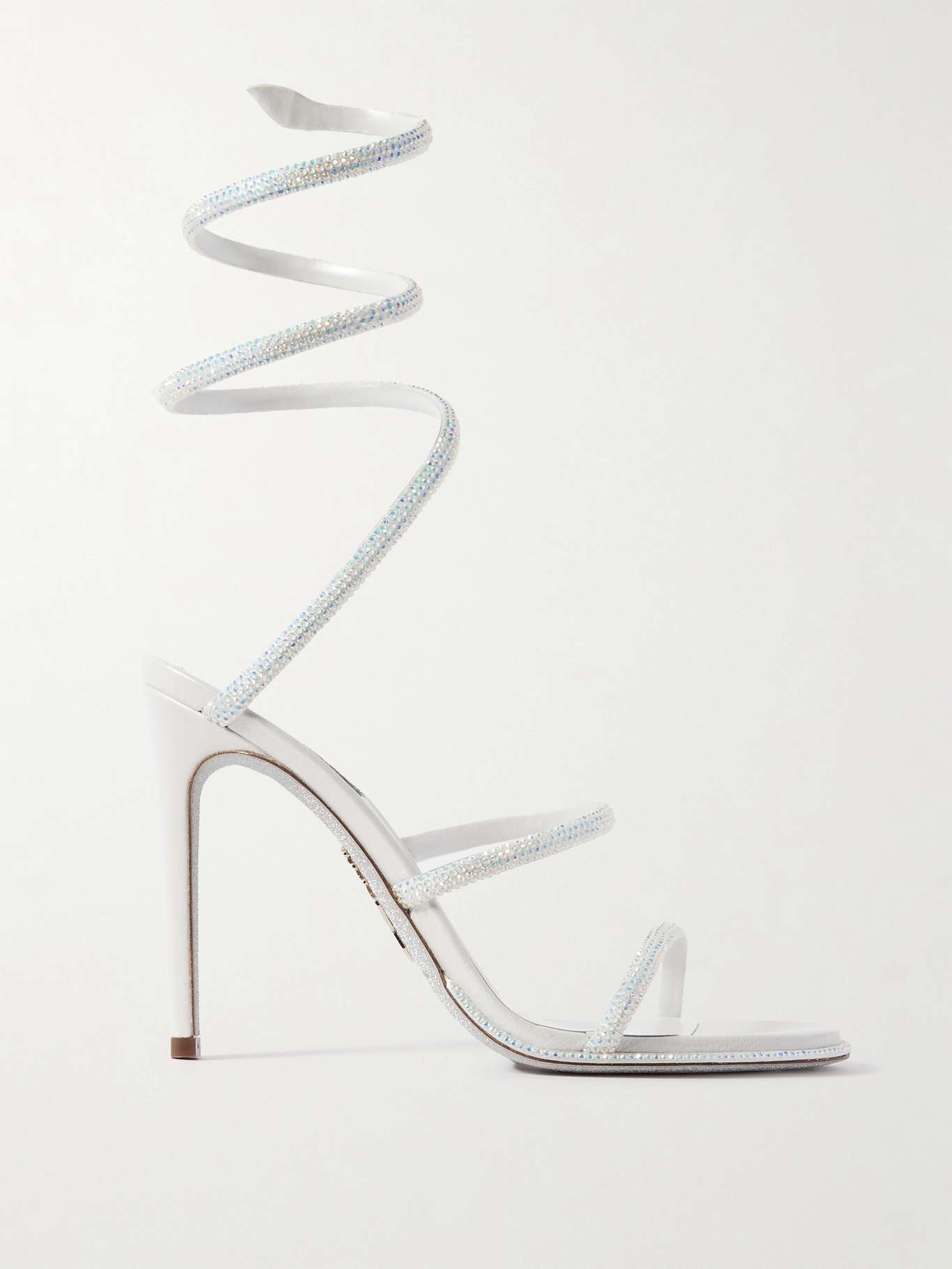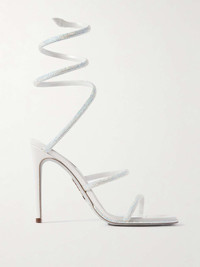 EDITORS'NOTES The most important events require noteworthy accessories, like Rene Caovilla's 'Cleo' sandals. Made from ivory satin, they're decorated with iridescent crystals along the slim straps, which wrap elegantly around the ankle. Wear yours with mini dresses or allow them to peek out from the split of your wedding gown. SIZE & FIT - Fits true to size, take your normal size - Italian sizing DETAILS & CARE - Heel measures approximately 105mm/ 4 inches - Ivory satin - Slip on